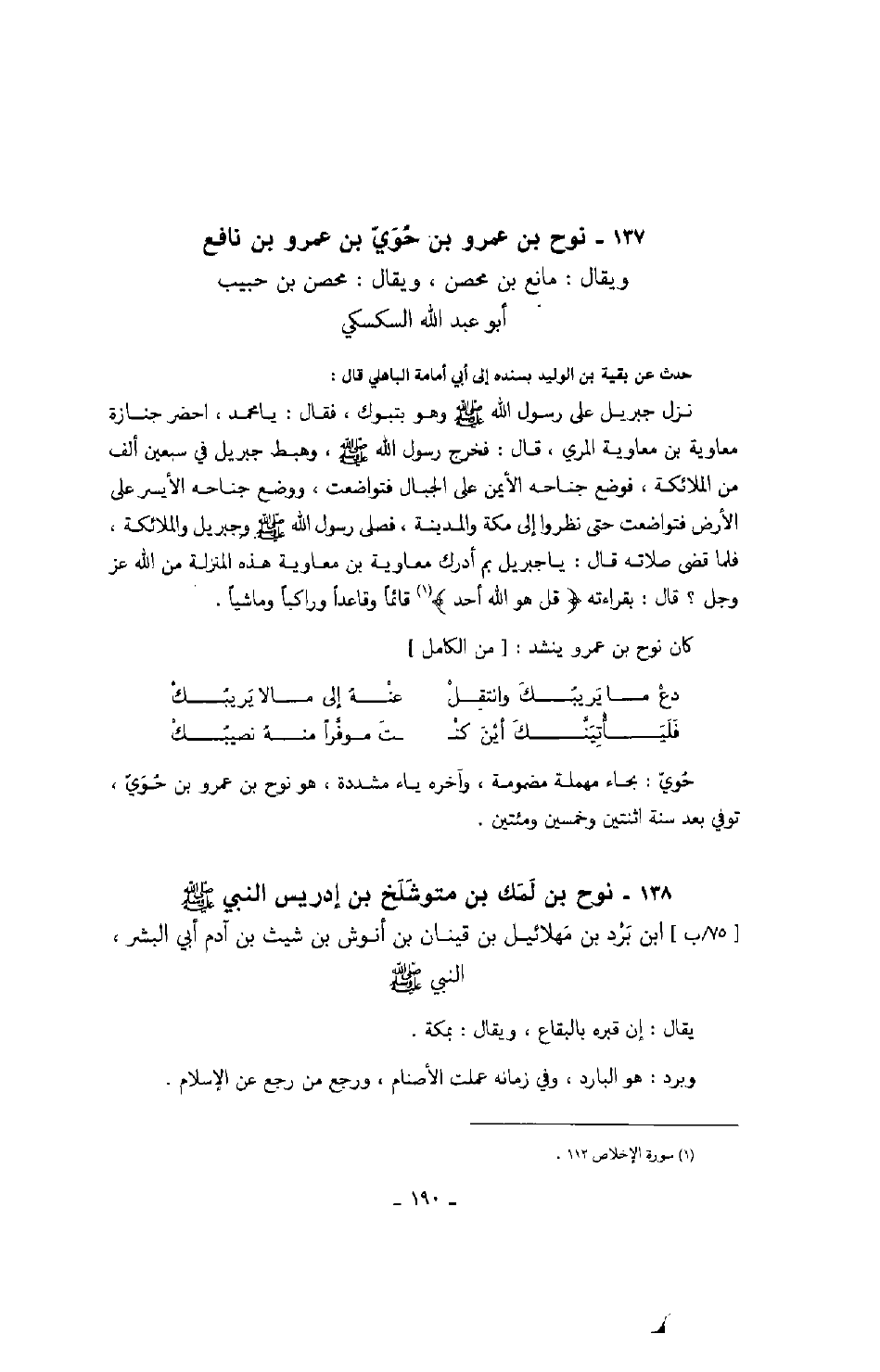 كان نوح بن عمرو ينشد: " من الكامل "