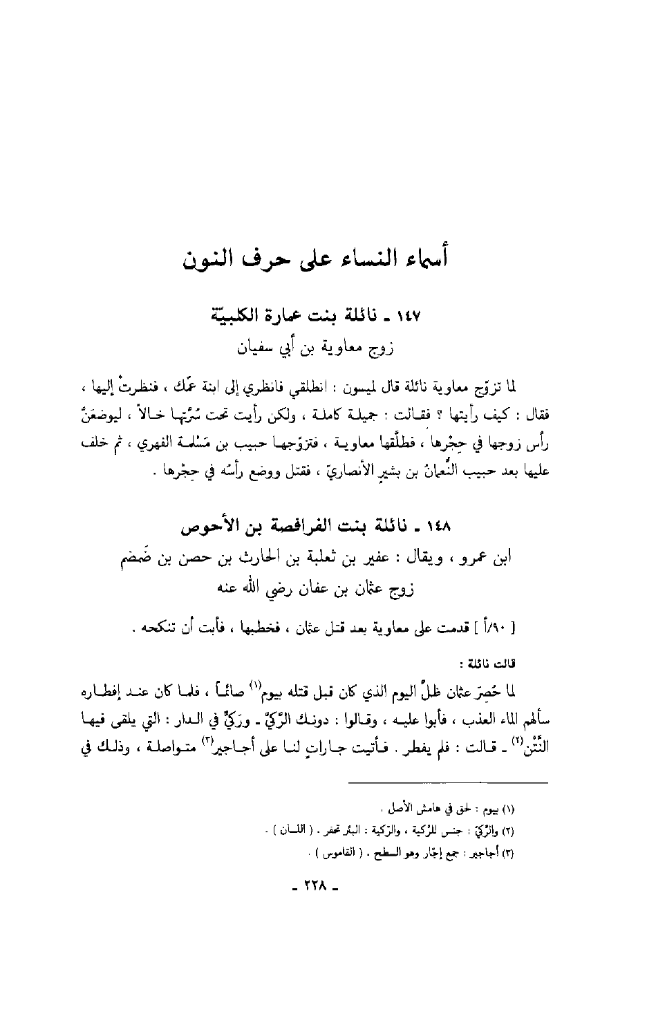 ابن عمرو، ويقال: عفير بن ثعلبة بن الحارث بن حصن بن ضمضم زوج عثمان بن عفان رضي الله عنه قدمت على معاوية بعد قتل عثمان، فخطبها، فأبت أن تنكحه.