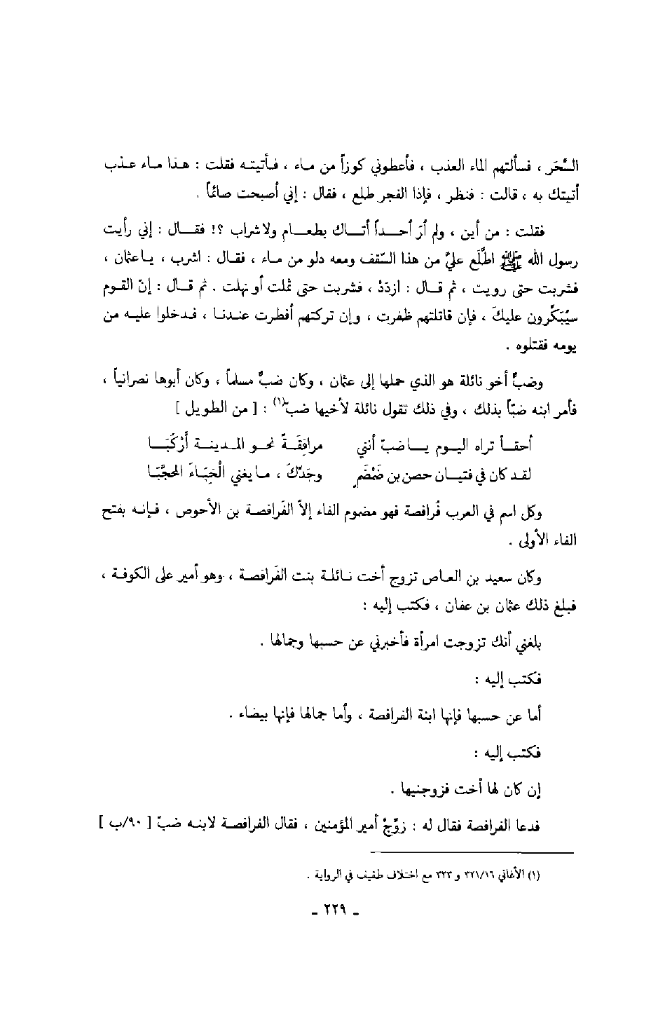 وكان سعيد بن العاص تزوج أخت نائلة بنت الفرافصة، وهو أمير على الكوفة، فبلغ ذلك عثمان بن عفان، فكتب إليه: بلغني أنك تزوجت امرأة فأخبرني عن حسبها وجمالها.