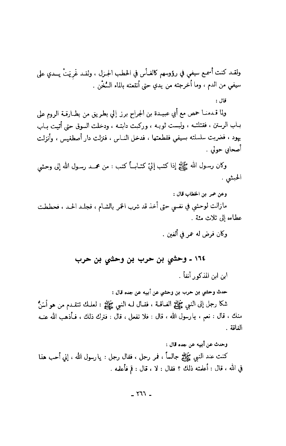 حدث وحشي بن حرب بن وحشي عن أبيه عن جده قال: