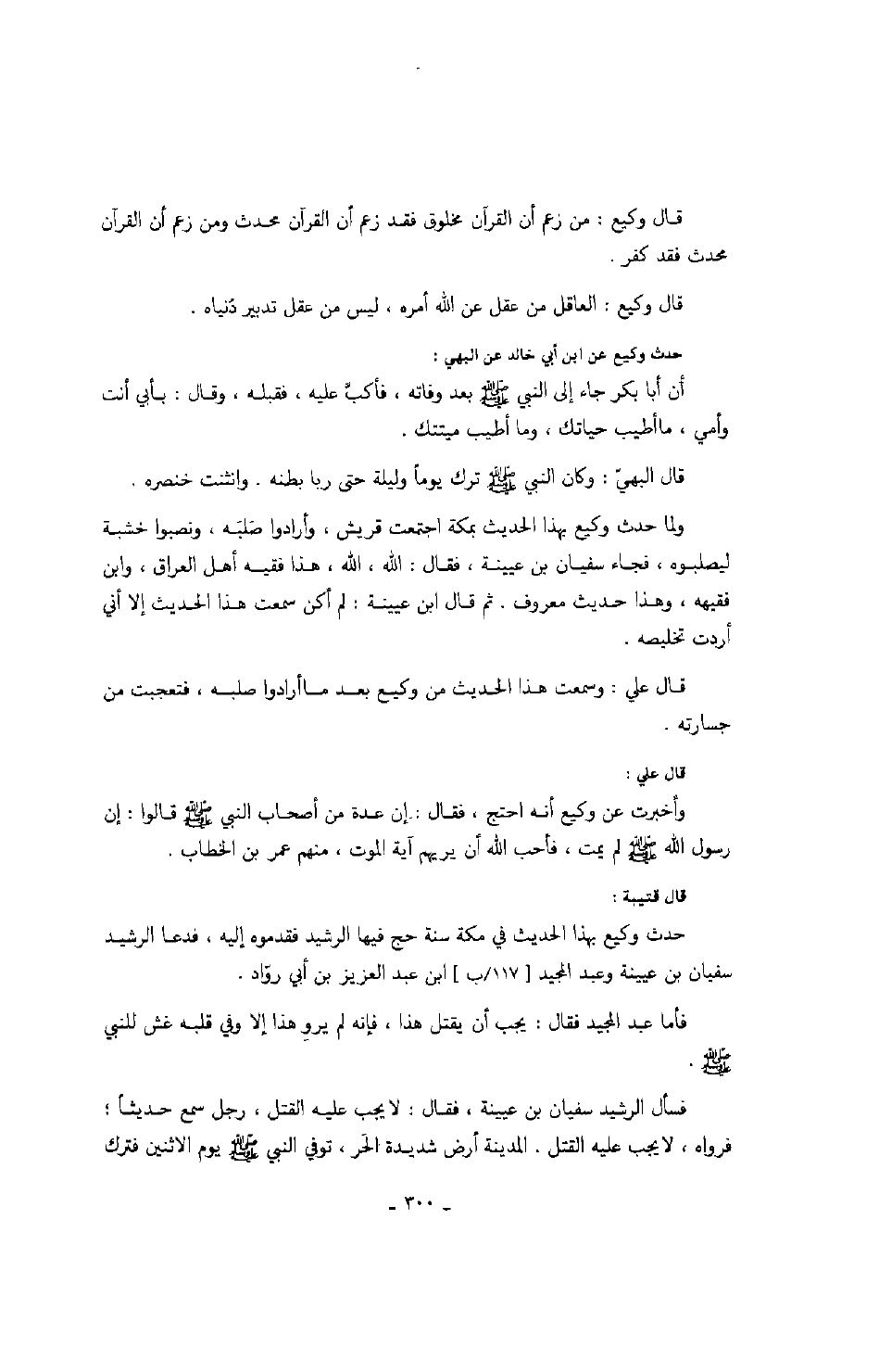 قال وكيع: من زعم أن القرآن مخلوق فقد زعم أن القرآن محدث ومن زعم أن القرآن محدث فقد كفر.