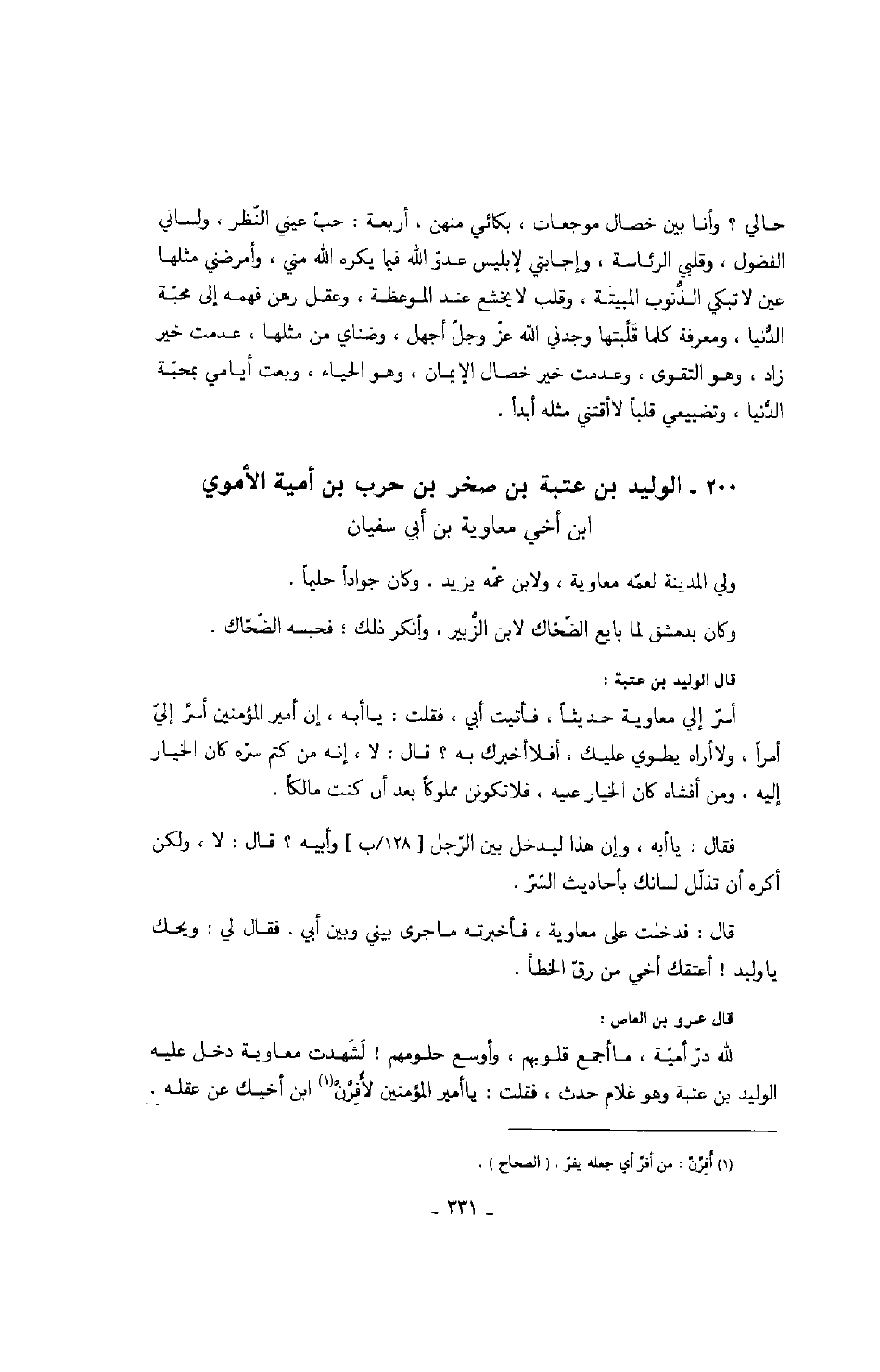 قال: فدخلت على معاوية فأخبرته ما جرى بيني وبين أبي. فقال لي: ويحك يا وليد! أعتقك أخي من رق الخطأ.