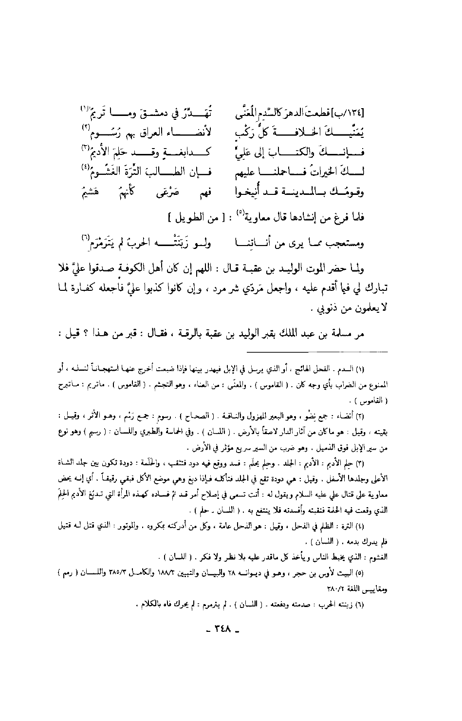 فلما فرغ من إنشادها قال معاوية: من الطويل
