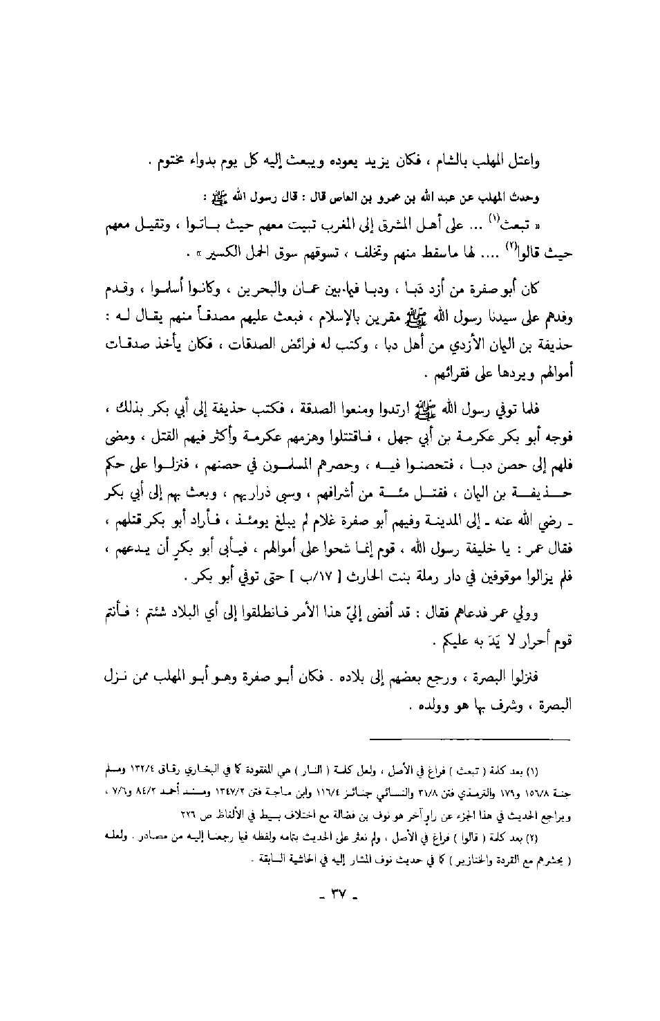 فنزلوا البصرة، ورجع بعضهم إلى بلاده، فكان أبو صفرة وهو أبو المهلب ممن نزل البصرة، وشرف بها هو وولده.