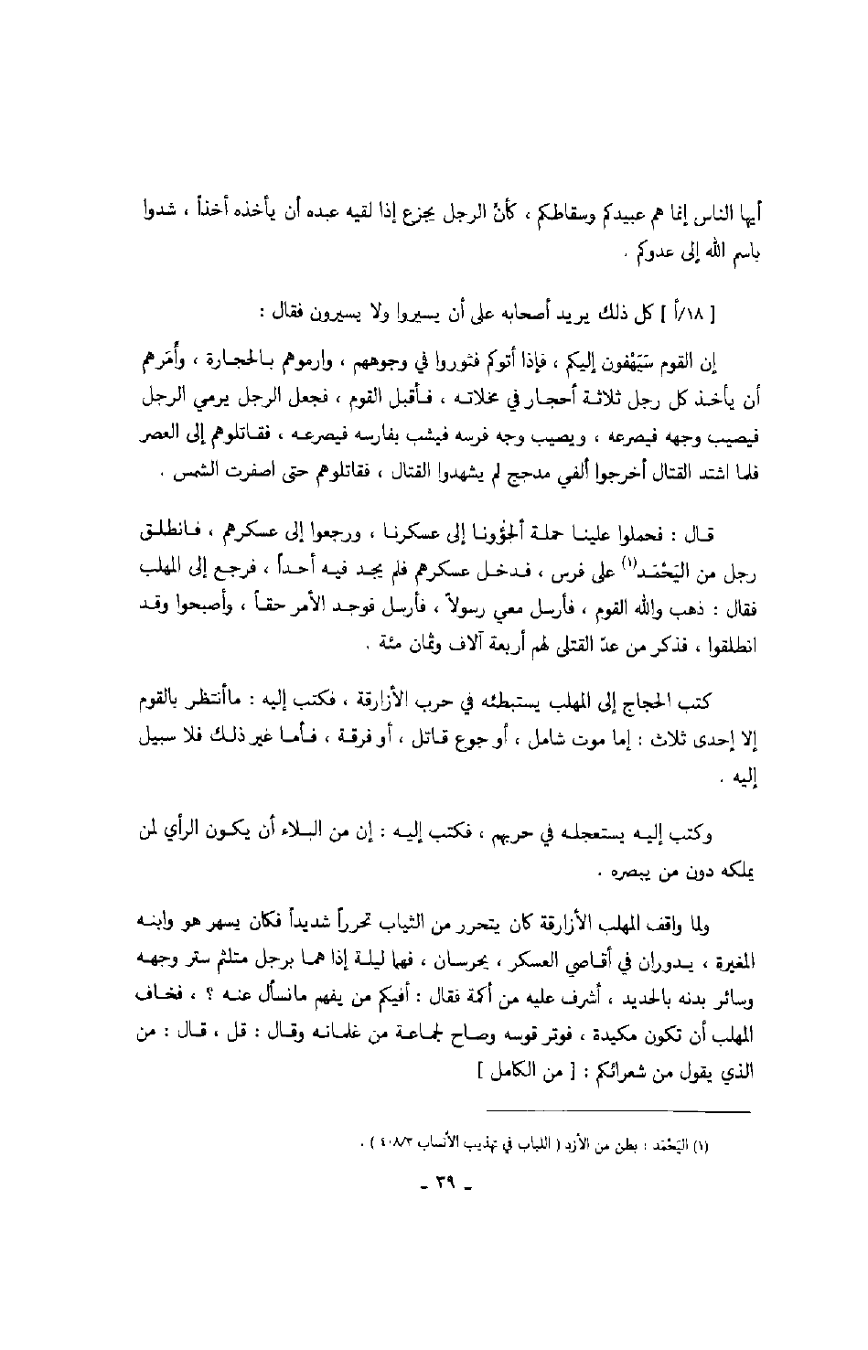 أيها الناس إنما هم عبيدكم وسقاطكم، كأن الرجل يجزع إذا لقيه عبده أن يأخذه أخذاً، شدوا باسم الله إلى عدوكم.