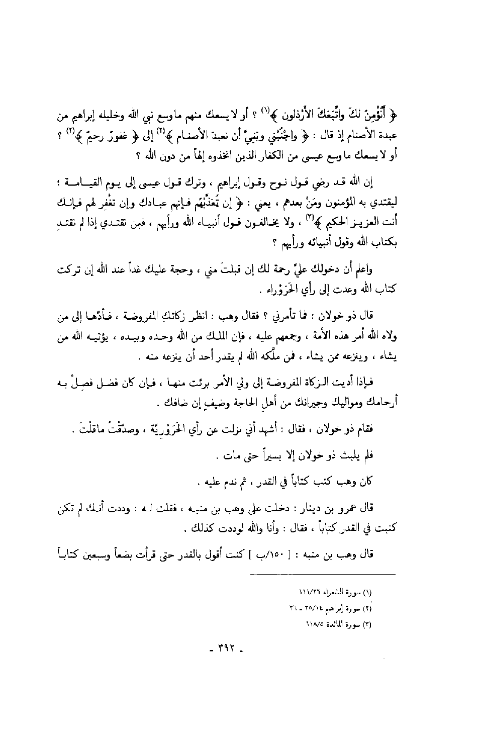 قال عمرو بن دينار: دخلت على وهب بن منبه، فقلت له: وددت أنك لم تكن كتبت في القدر كتاباً، فقال: وأنا والله لوددت كذلك.