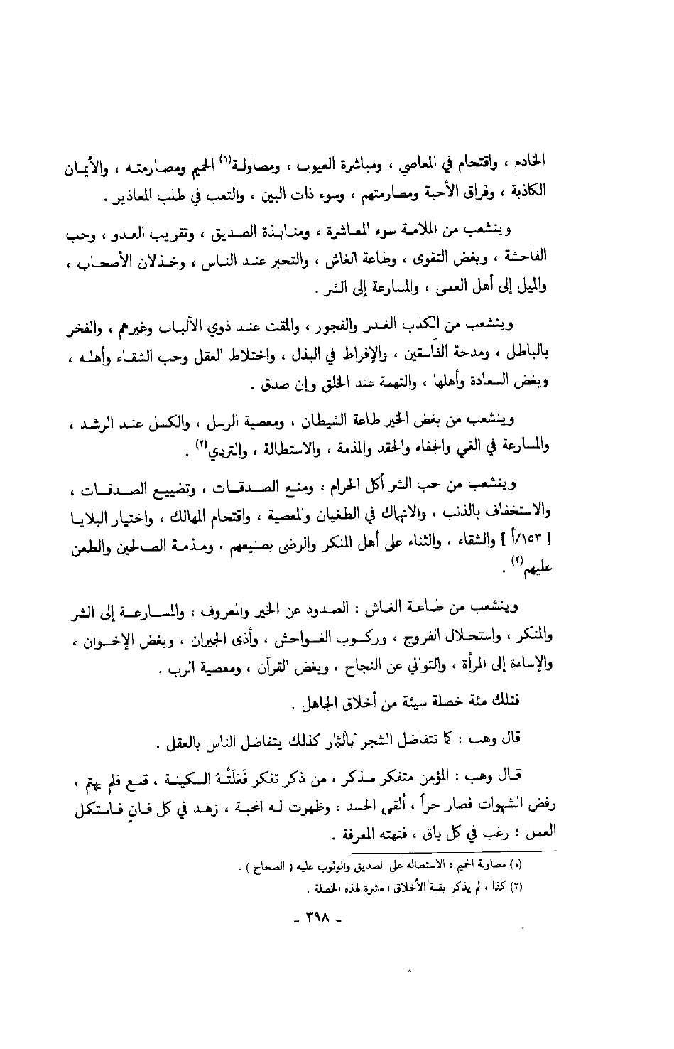وينشعب من حب الشر أكل الحرام، ومنع الصدقات، وتضييع الصدقات، والاستخفاف بالذنب، والانهماك في الطغيان والمعصية، واقتحام المهالك، واختيارالبلايا والشقاء، والثناء على أهل المنكر والرضى بصنيعهم، ومذمة الصالحين والطعن عليهم.
