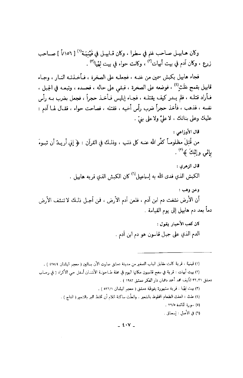 كان كعب الأحبار يقول: الدم الذي على جبل قاسون هو دم ابن آدم.