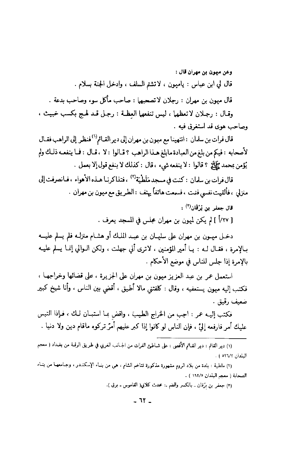 قال جعفر بن برقان: لم يكن لميمون بن مهران مجلس في المسجد يعرف.