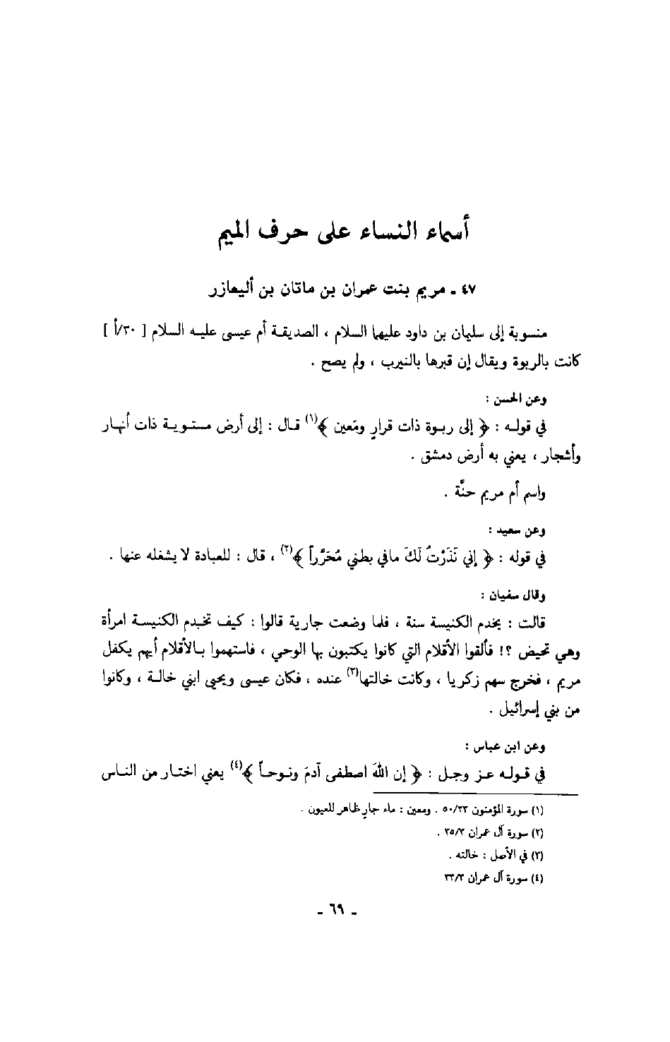 وقال سفيان: قالت: يخدم الكنيسة سنة، فملا وضعت جارية قالوا: كيف تخدم الكنيسة امرأة وهي تحيض؟! فألقوا الأقلام التي كانوا يكتبون بها الوحي، فاستهموا بالأقلام أيهم يكفل مريم، فخرج سهم زكريا، وكانت خالتها عنده، فكان عيسى ويحيى ابني خالة، وكانوا من بني إسرائيل.