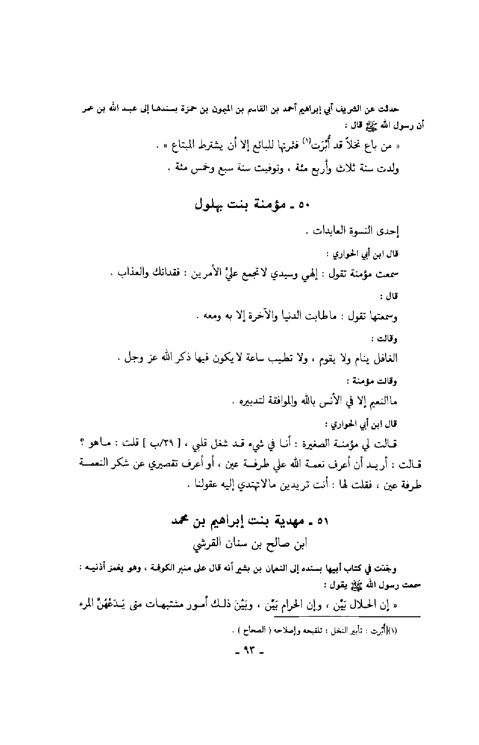 حدثت عن الشريف أبي إبراهيم أحمد بن القاسم بن الميمون بن حمزة بسندها إلى عبد الله بن عمر أن رسول الله صَلَّى اللهُ عَلَيْهِ وَسَلَّمَ قال: " من باع نخلاً قد أبرت فثمرتها للبائع إلا أن يشترط المبتاع ".