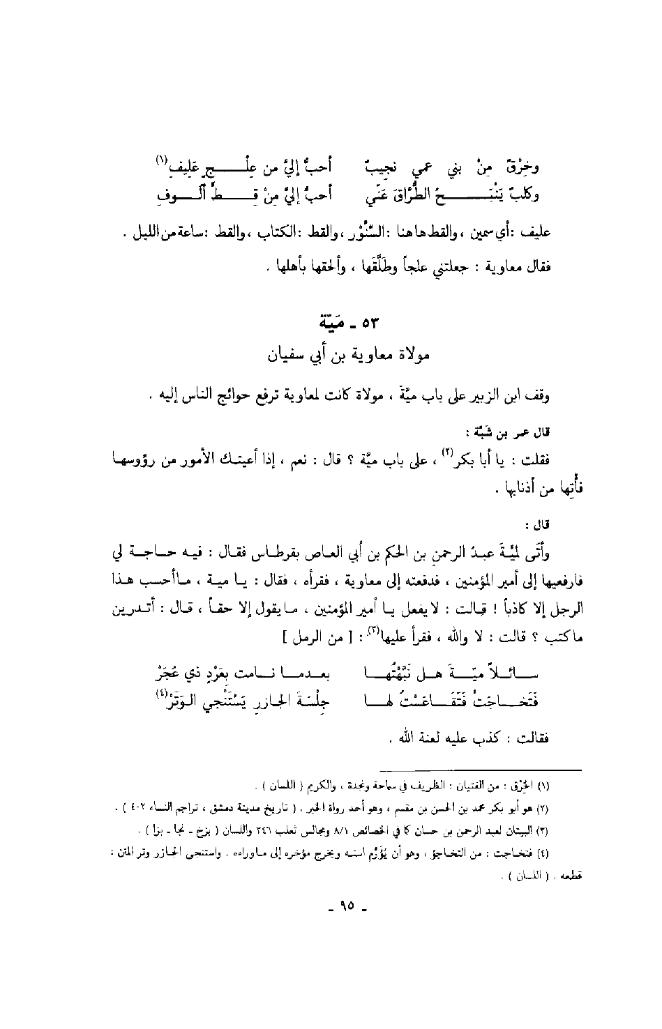وقف ابن الزبير على باب مية، مولاة كانت لمعاوية ترفع حوائج الناس إليه.