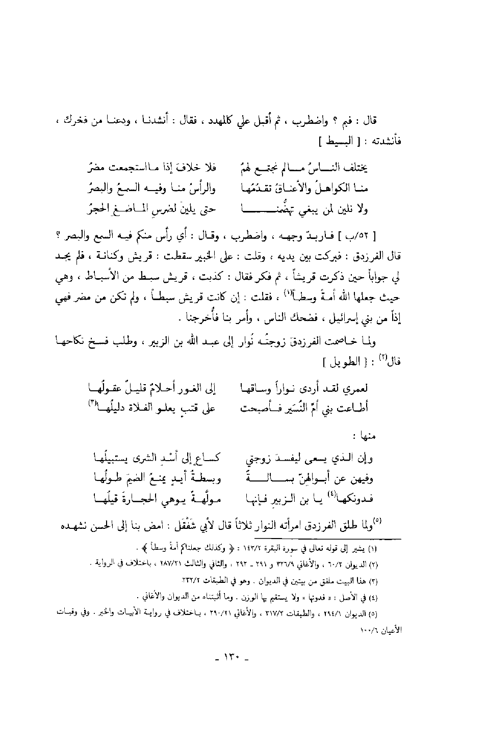 ولما خاصمت الفرزدق زوجته نوار إلى عبد الله بن الزبير، وطلب فسخ نكاحها قال: الطويل
