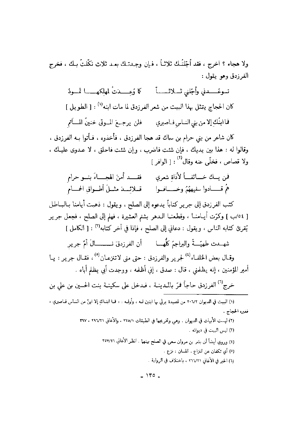 ولا هجاء؟ اخرج، فقد أجلتك ثلاثاً، فإن وجدتك بعد ثلاث نكلت بك، فخرج الفرزدق وهو يقول: