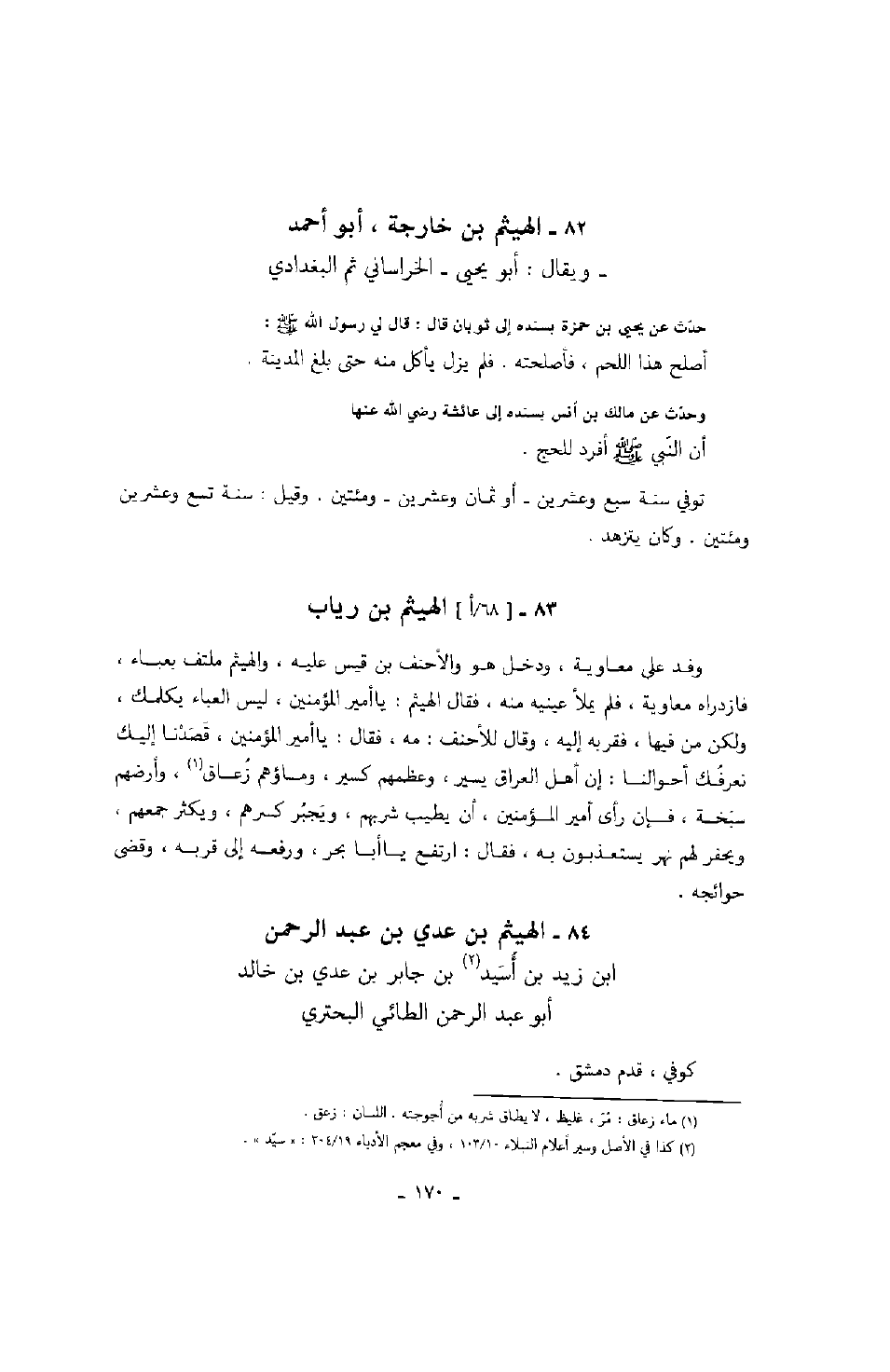 ويقال: أبو يحيى الخراساني ثم البغدادي حدث عن يحيى بن حمزة بسنده إلى ثوبان قال: قال لي رسول الله صَلَّى اللهُ عَلَيْهِ وَسَلَّمَ: أصلح هذا اللحم، فأصلحته. فلم يزل يأكل منه حتى بلغ المدينة.