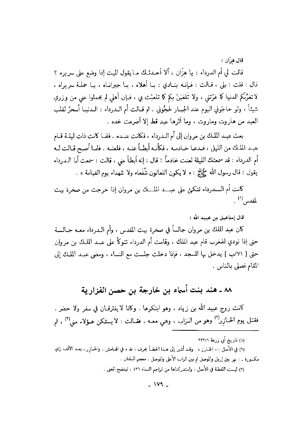 كانت أم الدرداء تتكىء على عبد الملك بن مروان إذا خرجت من صخرة بيت لمقدس.