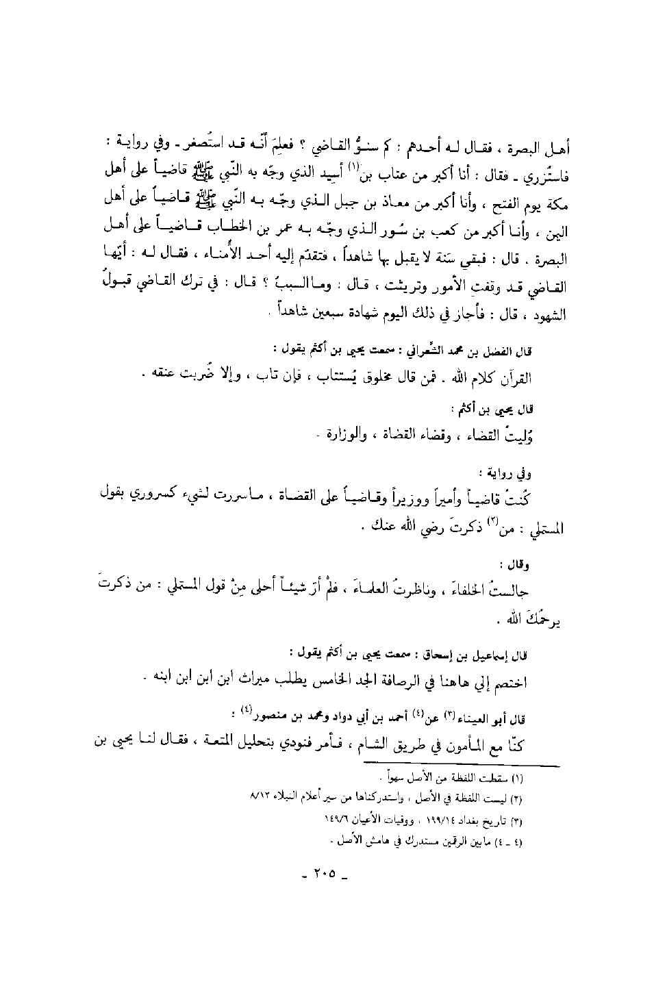قال الفضل بن محمد الشعراني: سمعت يحيى بن أكثم يقول: القرآن كلام الله. فمن قال مخلوق يستتاب، فإن تاب، وإلا ضربت عنقه.