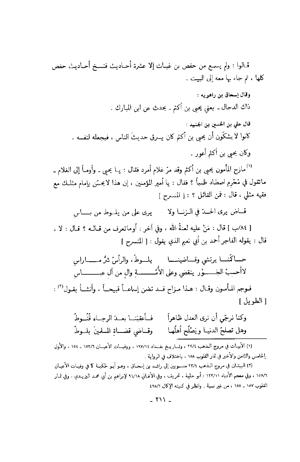 قال علي بن الحسين بن الجنيد: كانوا لا يشكون أن يحيى بن أكثم كان يسرق حديث الناس، فيجعله لنفسه.