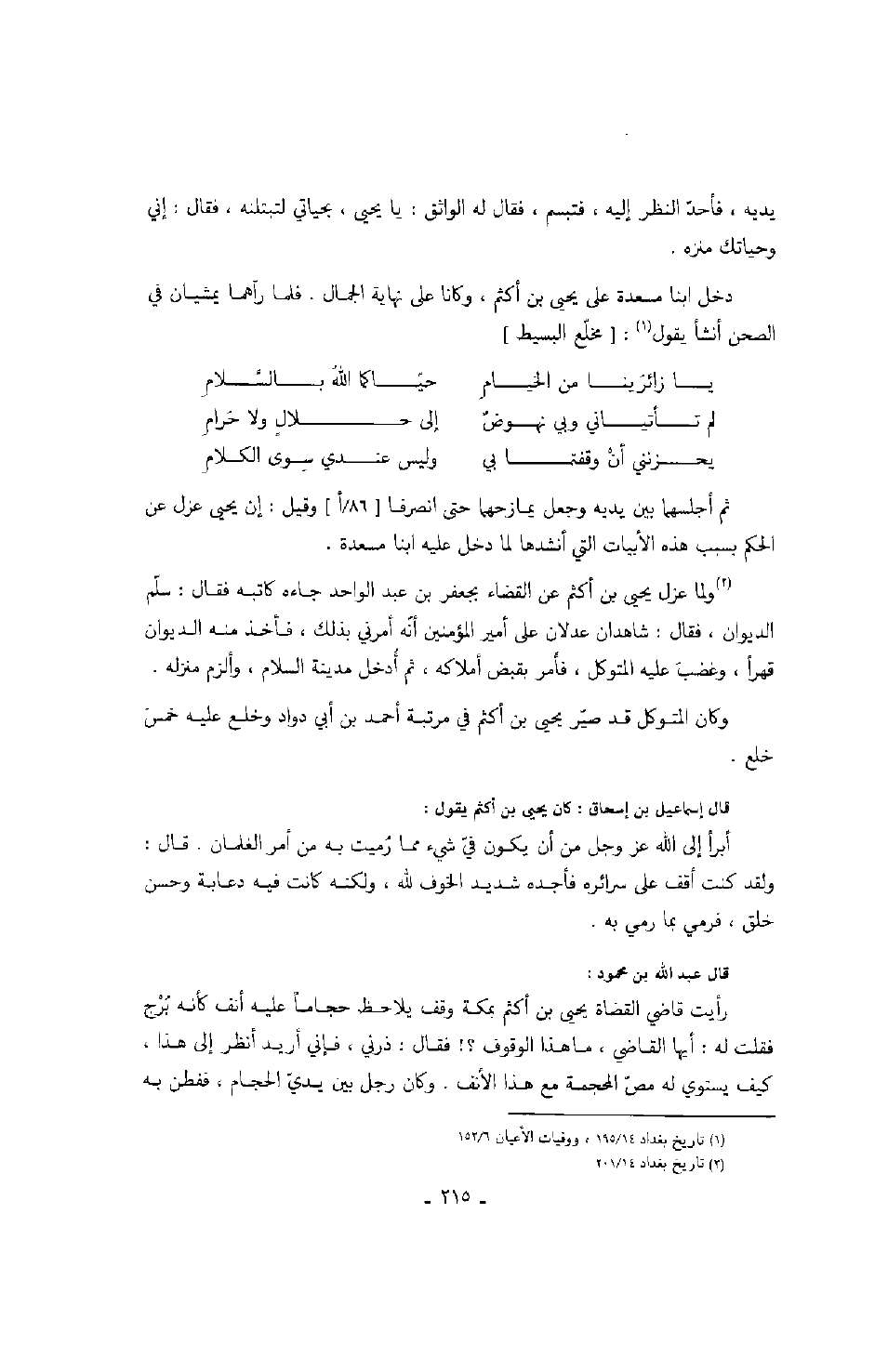 يديه، فأحد النظر إليه، فتبسم، فقال له الواثق: يا يحيى، بحياتي لتبتلنه، فقال: إني وحياتك منزه.