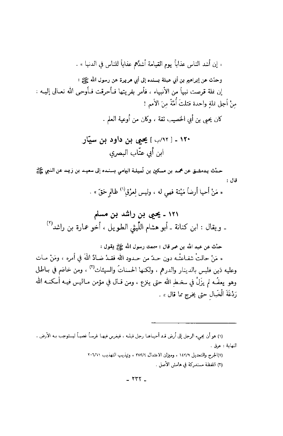 ابن أبي عتاب البصري حدث بدمشق عن محمد بن مسكين بن نميلة اليمامي بسنده إلى سعيد بن زيد عن النبي صَلَّى اللهُ عَلَيْهِ وَسَلَّمَ قال: " من أحيا أرضاً ميتة فهي له، وليس لعرق ظالم حق ".