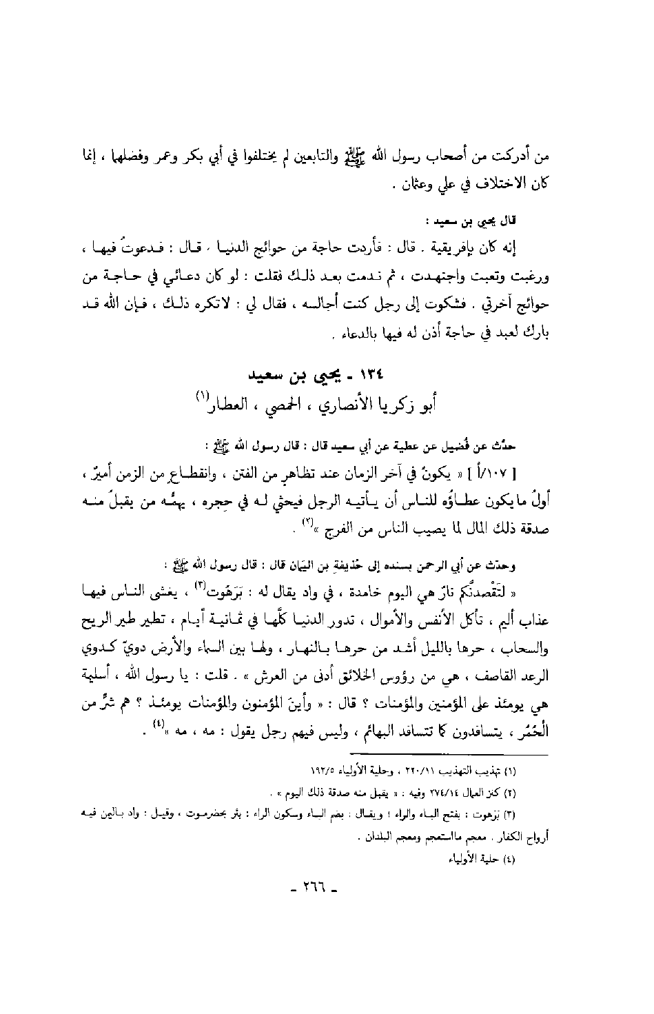 الحمصي، العطار حدث عن فضيل عن عطية عن أبي سعيد قال: قال رسول الله صَلَّى اللهُ عَلَيْهِ وَسَلَّمَ: " يكون في آخر الزمان عند تظاهر من الفتن، وانقطاع من الزمن أمير، أول ما يكون عطاؤه للناس أن يأتيه الرجل فيحثي له في حجره، يهمه من يقبل منه صدقة ذلك المال لما يصيب الناس من الفرج ".