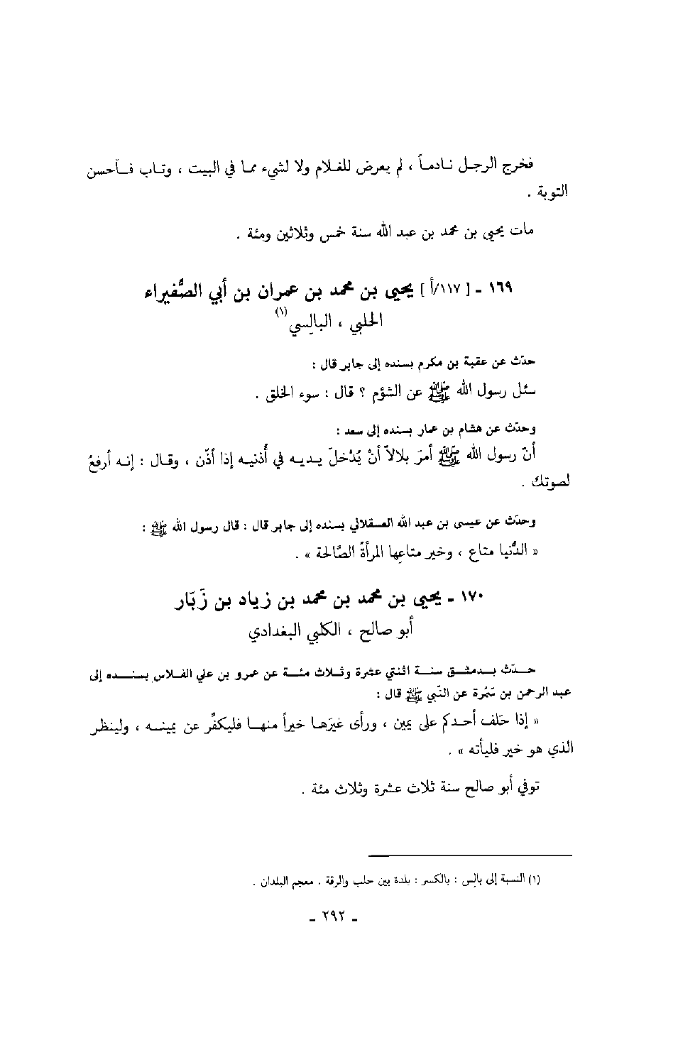 أبو صالح، الكلبي البغدادي حدث بدمشق سنة اثنتي عشرة وثلاث مئة عن عمرو بن علي الفلاس بسنده إلى عبد الرحمن بن سمرة عن النبي صَلَّى اللهُ عَلَيْهِ وَسَلَّمَ قال: " إذا حلف أحدكم على يمين، ورأى غيرها خيراً منها فليكفر عن يمينه، ولينظر الذي هو خير فليأته ".