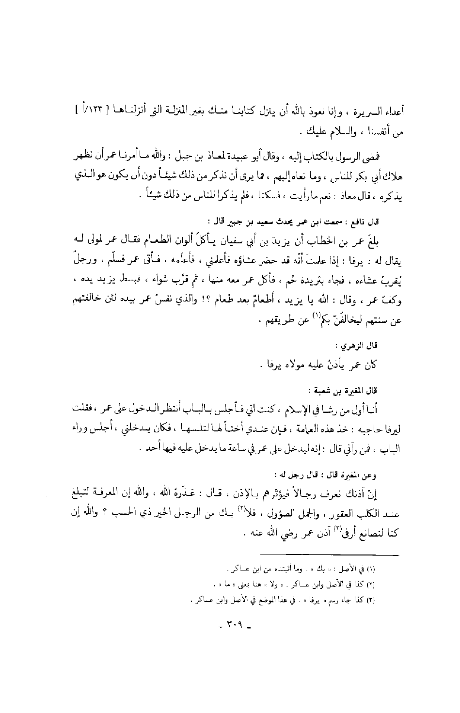 وعن المغيرة قال: قال رجل له: إن آذنك يعرف رجالاً فيؤثرهم بالإذن، قال: عذره الله، والله إن المعرفة لتبلغ عند الكلب العقور، والجمل الصؤول، فلا بك من الرجل الخير ذي الحسب؟ والله إن كنا لنصانع أرفى آذن عمر رضي الله عنه.