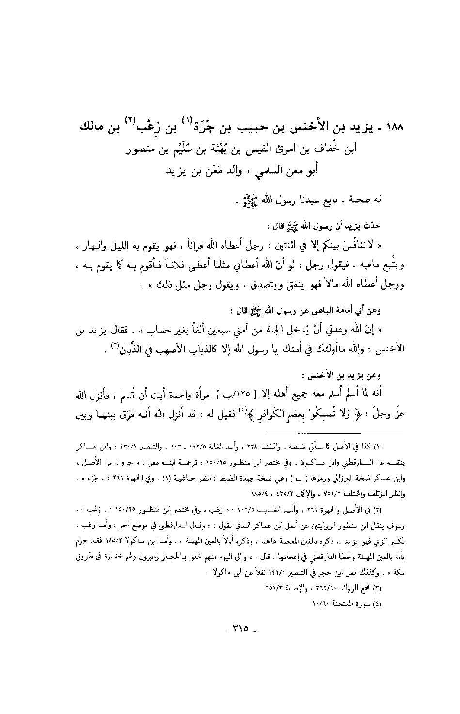 وعن يزيد بن الأخنس: