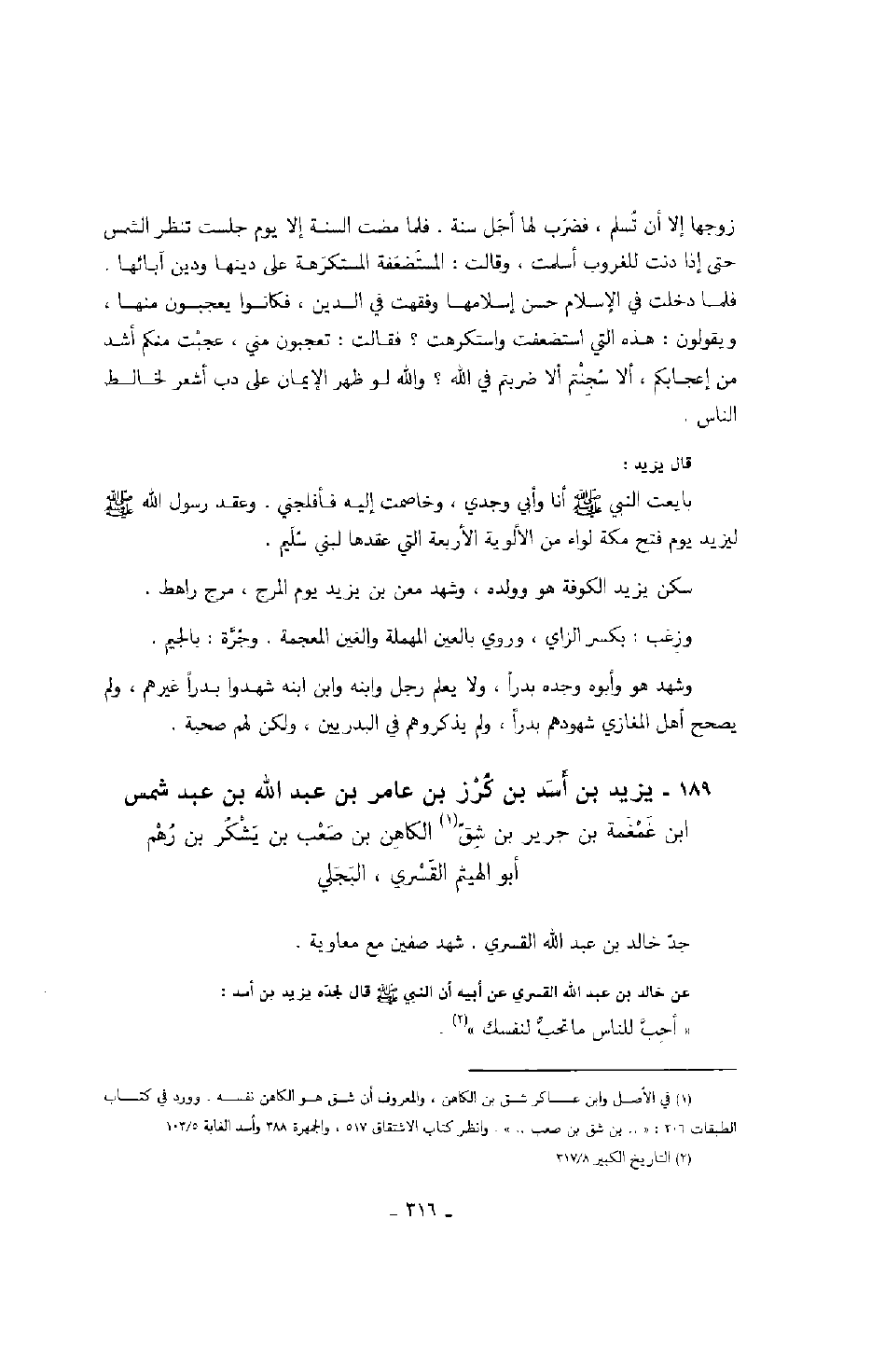 عن خالد بن عبد الله القسري عن أبيه أن النبي صَلَّى اللهُ عَلَيْهِ وَسَلَّمَ قال لجده يزيد بن أسد: " أحب للناس ما تحب لنفسك ".