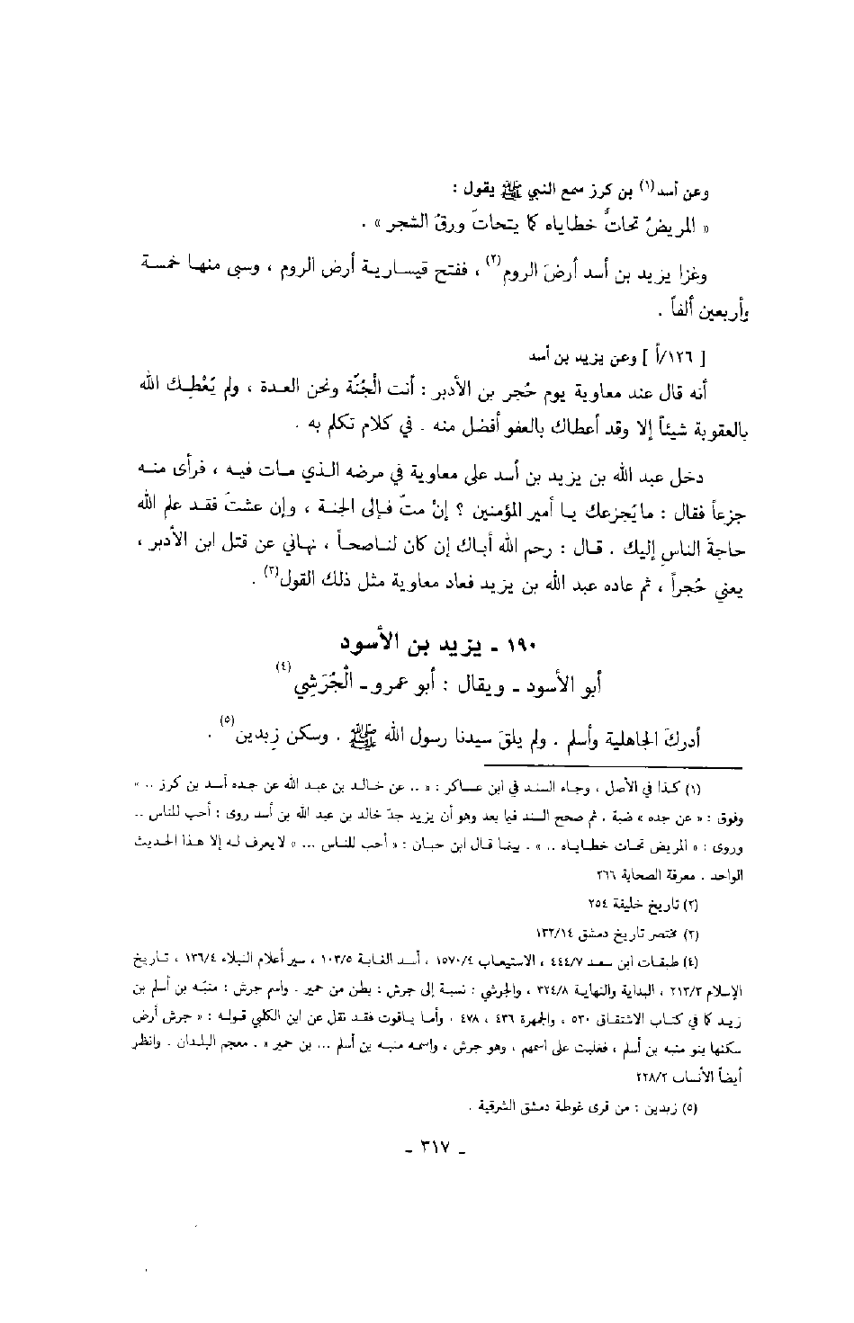 وعن يزيد بن أسد، أنه قال عند معاوية يوم حجر بن الأدبر: أنت الجنة ونحن العدة، ولم يعطك الله بالعقوبة شيئاً إلا وقد أعطاك بالعفو أفضل منه. في كلام تكلم به.