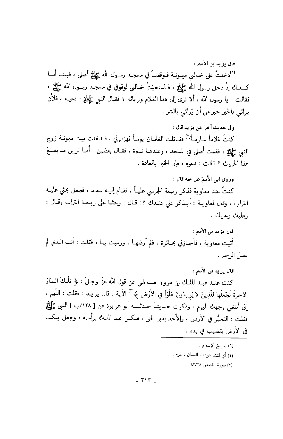 وفي حديث آخر عن يزيد قال: كنت غلاماً عارماً فقاتلت الغلمان يوماً فهزموني، فدخلت بيت ميمونة زوج النبي صَلَّى اللهُ عَلَيْهِ وَسَلَّمَ، فقمت أصلي في المسجد، وعندها نسوة، فقال بعضهن: أما ترين ما يصنع هذا الخبيث؟ قالت: دعوه، فإن الخير بالعادة.