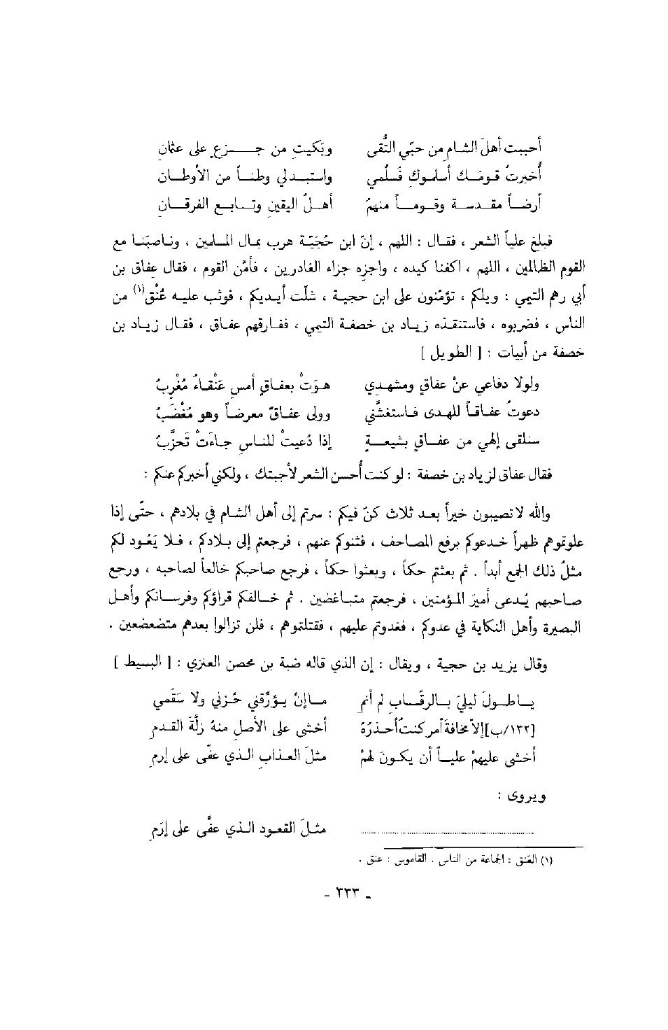 سنلقى إلهي من عفاق بشيعة ... إذا دعيت للناس جاءت تحزب