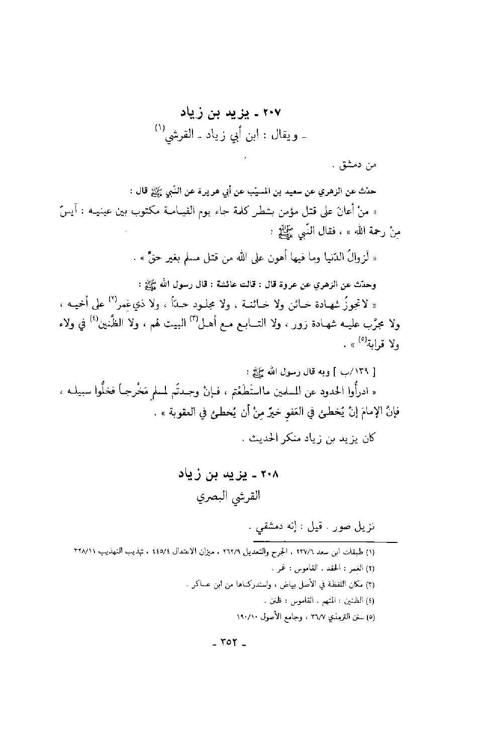 حدث عن الزهري عن سعيد بن المسيب عن أبي هريرة عن النبي صَلَّى اللهُ عَلَيْهِ وَسَلَّمَ قال: " من أعان على قتل مؤمن بشطر كلمة جاء يوم القيامة مكتوب بين عينيه: آيس من رحمة الله "، فقال النبي صَلَّى اللهُ عَلَيْهِ وَسَلَّمَ: " لزوال الدنيا وما فيها أهون على الله من قتل مسلم بغير حق ".
