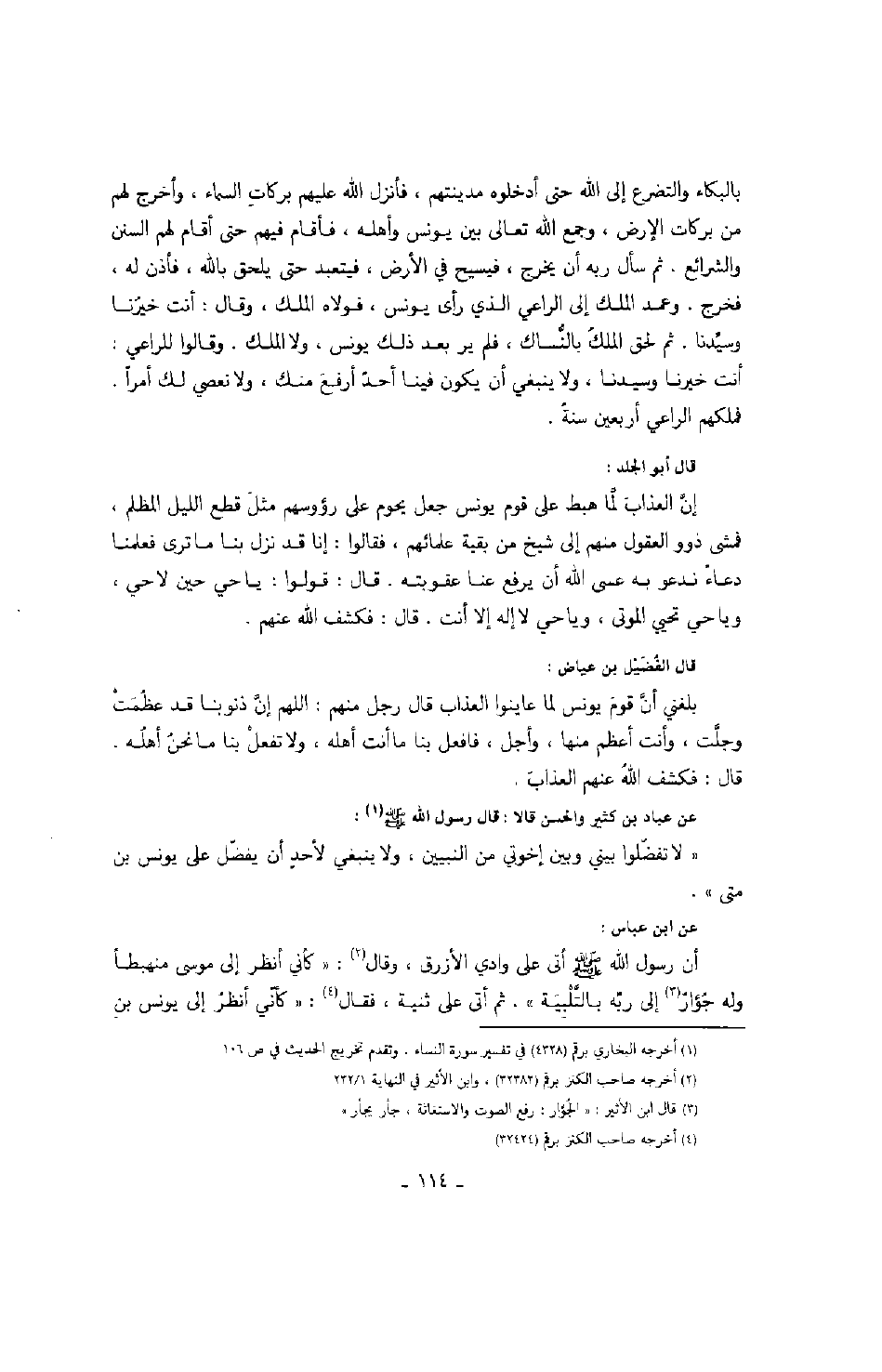 عن عباد بن كثير والحسن قالا: قال رسول الله صَلَّى اللهُ عَلَيْهِ وَسَلَّمَ: لا تفضلوا بيني وبين إخوتي من النبيين ولا ينبغي لأحد أن يفضل على يونس بن متى.