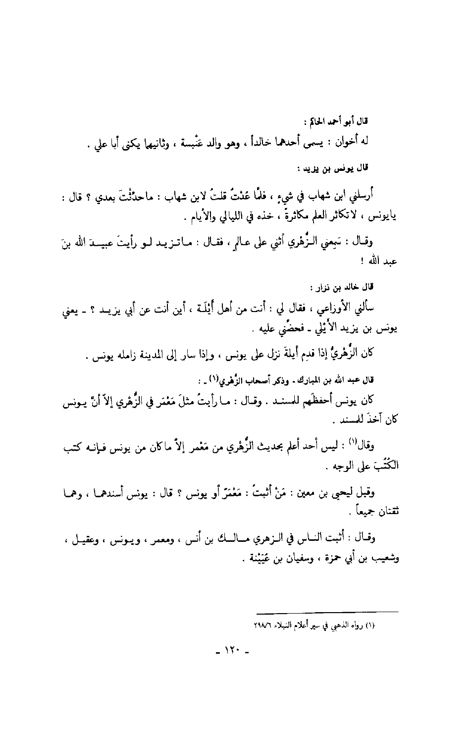 قال عبد الله بن المبارك وذكر أصحاب الزهري: كان يونس أحفظهم للمسند. وقال: ما رأيت مثل معمر في الزهري إلا أن يونس كان آخذ للمسند.