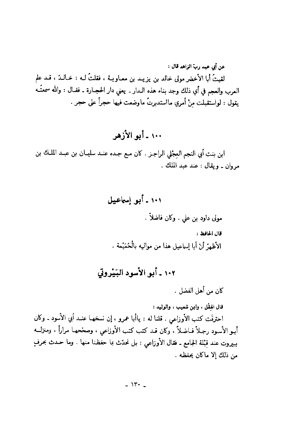 قال الهقل، وابن شعيب، والوليد: احترقت كتب الأوزاعي. قلنا له: يا أبا عمرو، إن نسخها عند أبي الأسود وكان أبو الأسود رجلاً فاضلاً، وكان قد كتب كتب الأوزاعي، وصححها مراراً، ومنزله ببيروت عند قبلة الجامع فقال الأوزاعي: بل نحدث بما حفظنا منها. وما حدث بحرف من ذلك إلا ما كان يحفظه.