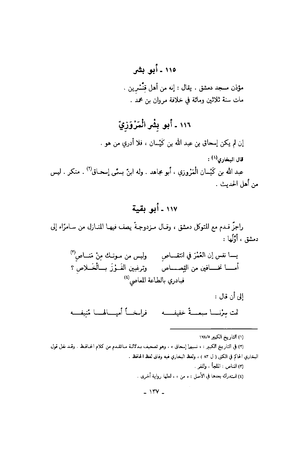 راجز قدم مع المتوكل دمشق، وقال مزدوجةً يصف فيها المنازل من سامراء إلى دمشق، أولها:؟ يا نفس إن العمر في انتقاص وليس من موتك من مناص