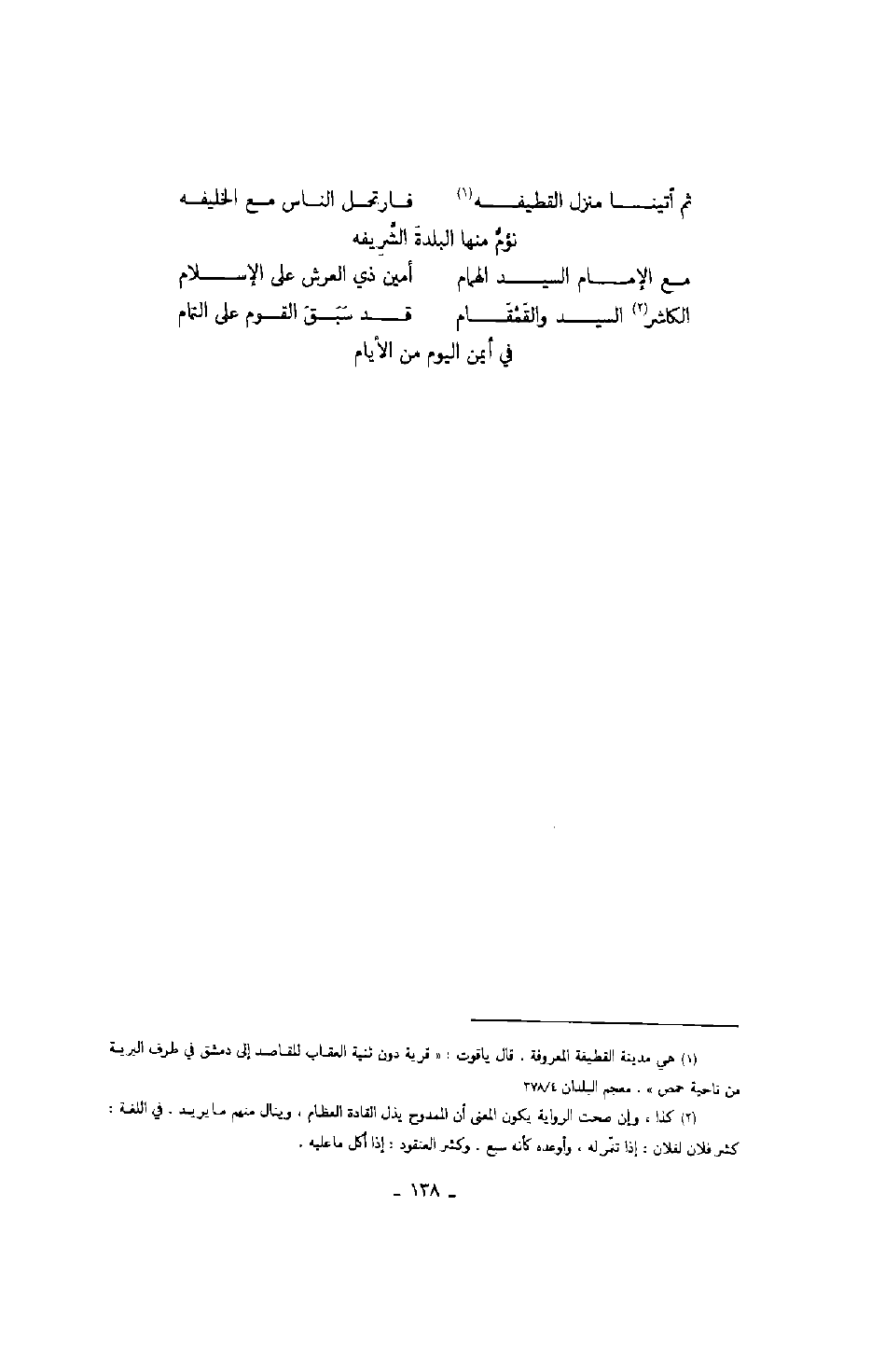 ثم أتينا منزل القطيفه ... فارتحل الناس مع الخليفه