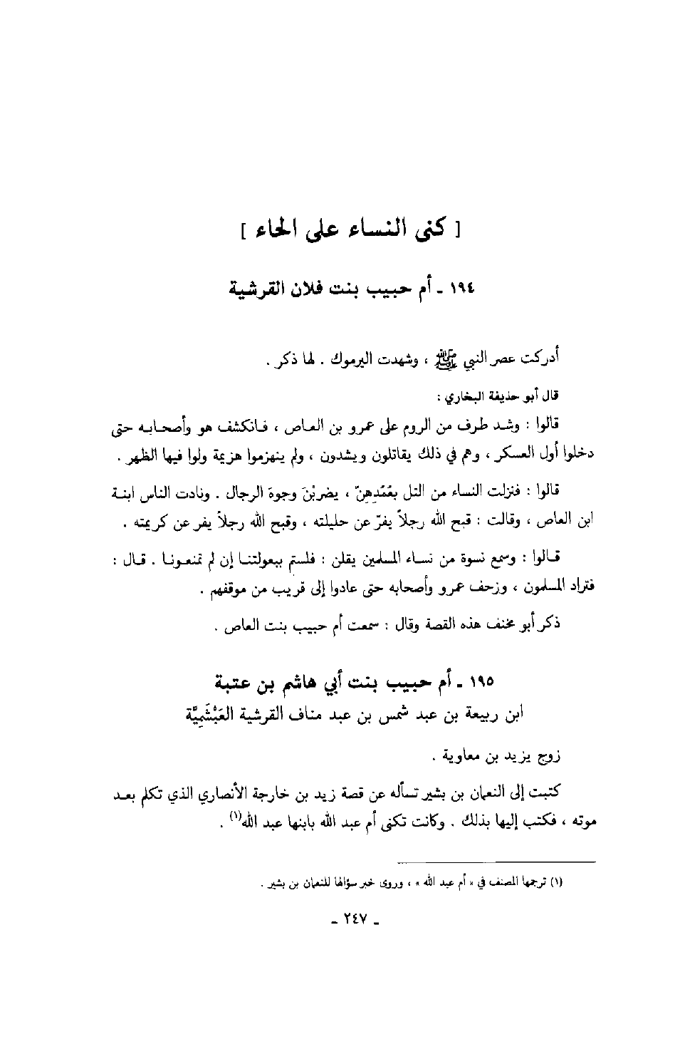 أدركت عصر النبي صَلَّى اللهُ عَلَيْهِ وَسَلَّمَ، وشهدت اليرموك. لها ذكر.
