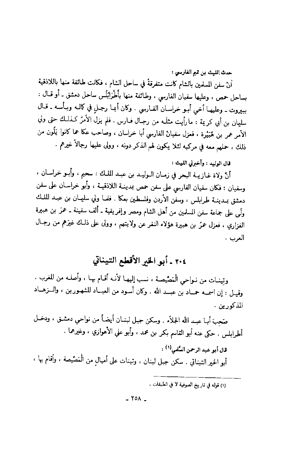 حدث الليث بن تميم الفارسي: أن سفن المسلمين بالشام كانت متفرقةً في ساحل الشام، فكانت طائفة منها باللاذقية بساحل حمص، وعليها سفيان الفارسي، وطائفة منها بأطرابلس ساحل دمشق أو قال: ببيروت وعليها أخي أبو خراسان الفارسي. وكان أيما رجل في كماله وبأسه قال سليمان بن أبي كريمة: ما رأيت مثله من رجال فارس فلم يزل الأمر كذلك حتى ولي الأمر عمر بن هبيرة، فعزل سفيان الفارسي أبا خراسان، وصاحب عكا عما كانوا يلون من ذلك، حملهم معه في مركبه لئلا يكون لهم الذكر دونه، وولى عليها رجالاً غيرهم.