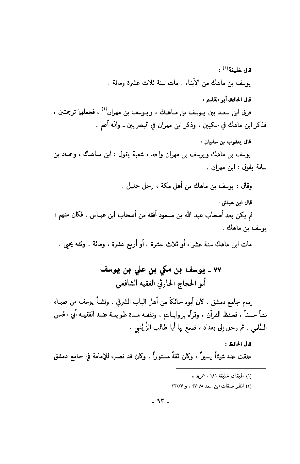 قال الحافظ أبو القاسم: فرق ابن سعد بين يوسف بن ماهك، ويوسف بن مهران، فجعلهما ترجمتين، فذكر ابن ماهك في المكيين، وذكر ابن مهران في البصريين والله أعلم.