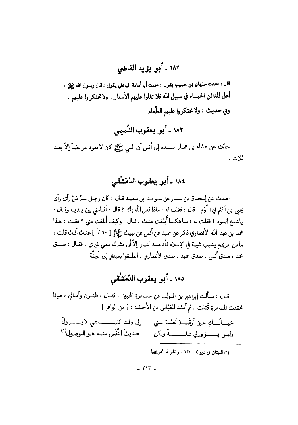 حدث عن هشام بن عمار بسنده إلى أنس أن النبي صَلَّى اللهُ عَلَيْهِ وَسَلَّمَ كان لا يعود مريضاً إلا بعد ثلاث.