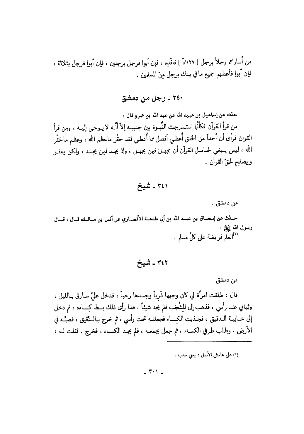 حدث عن إسحاق بن عبد الله بن أبي طلحة الأنصاري عن أنس بن مالك قال: قال رسول الله صَلَّى اللهُ عَلَيْهِ وَسَلَّمَ: العلم فريضة على كل مسلم.