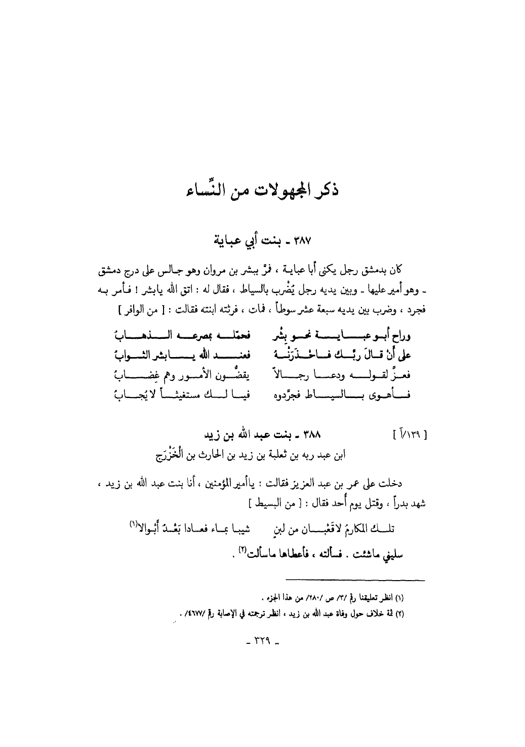 ذكر المجهولات من النساء