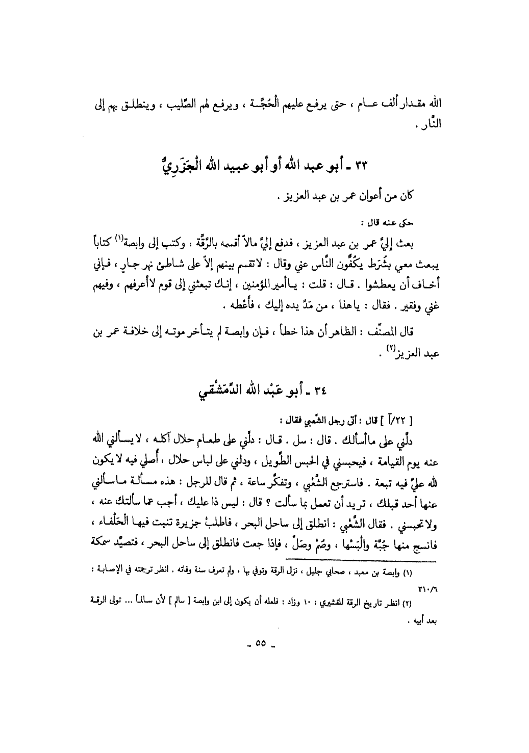 قال المصنف: الظاهر أن هذا خطأ، فإن وابصة لم يتأخر موته إلى خلافة عمر بن عبد العزيز.