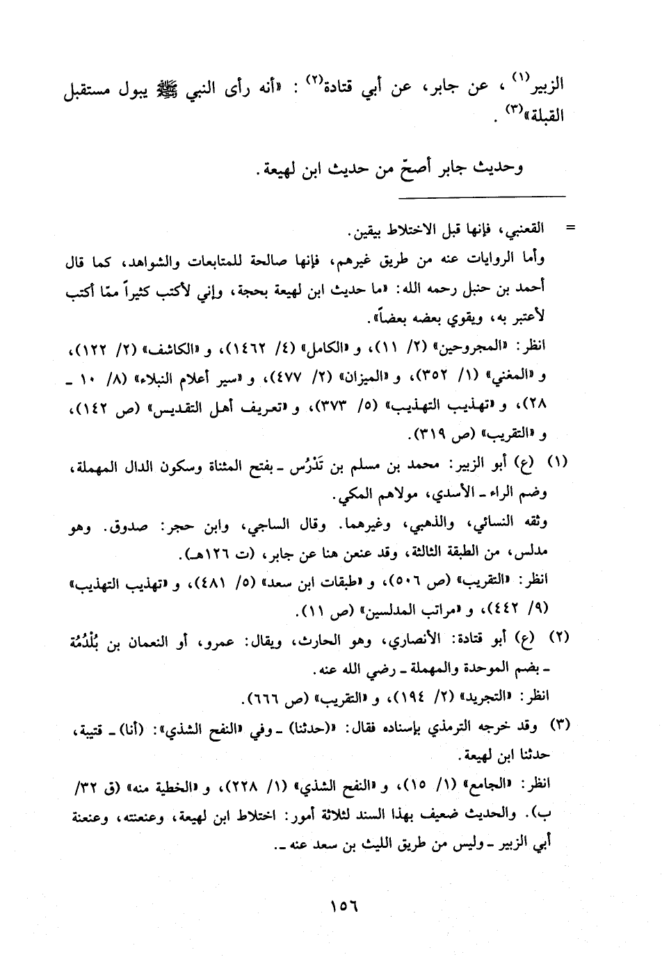 الزُّبَيْرِ عَنْ جَابِرٍ عَنْ أَبِي قَتَادَةَ أَنَّهُ رَأَى النَّبِيَّ صَلَّى اللَّهُ عَلَيْهِ وَسَلَّمَ يَبُولُ مُسْتَقْبِلَ الْقِبْلَةَ