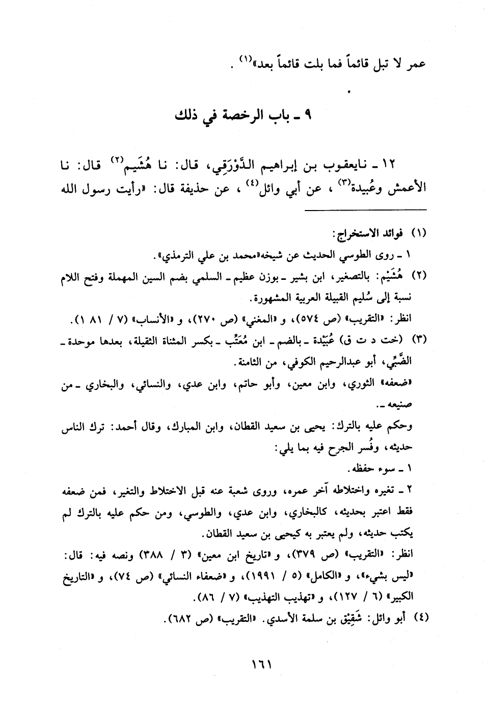 12 - نَا يَعْقُوبُ بْنُ إِبْرَاهِيمَ الدَّوْرَقِيُّ قَالَ نَا هُشَيْمٌ قَالَ نَا الأَعْمَشُ وَعُبَيْدَةُ عَنْ أَبِي وَائِلٍ عَنْ حُذَيْفَةَ قَالَ رَأَيْتُ رَسُولَ اللَّهِ