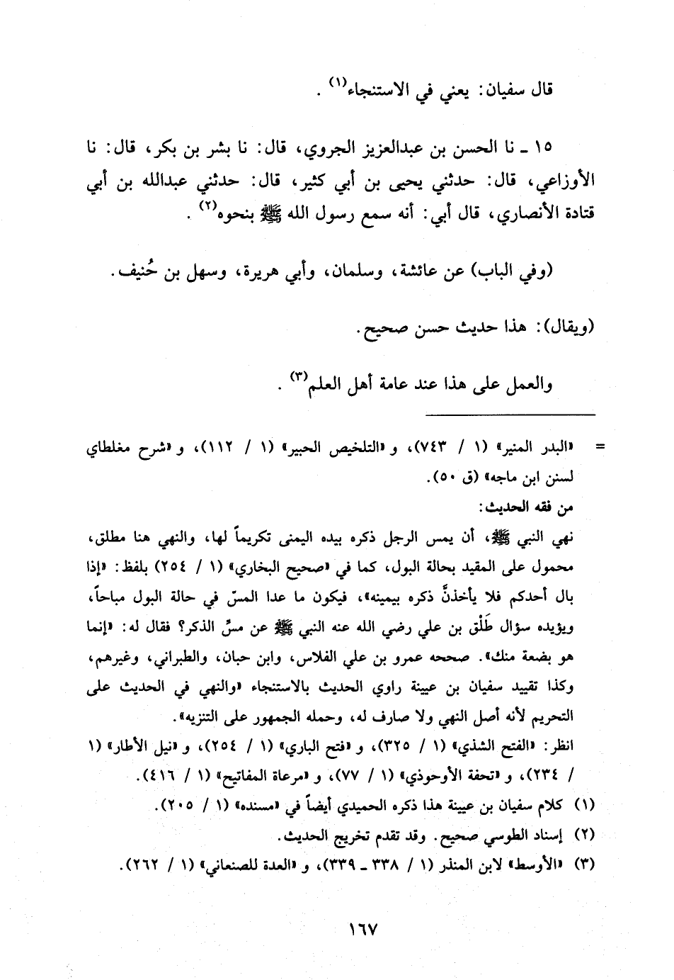 قَالَ سُفْيَانُ يَعْنِي فِي الاسْتِنْجَاءِ