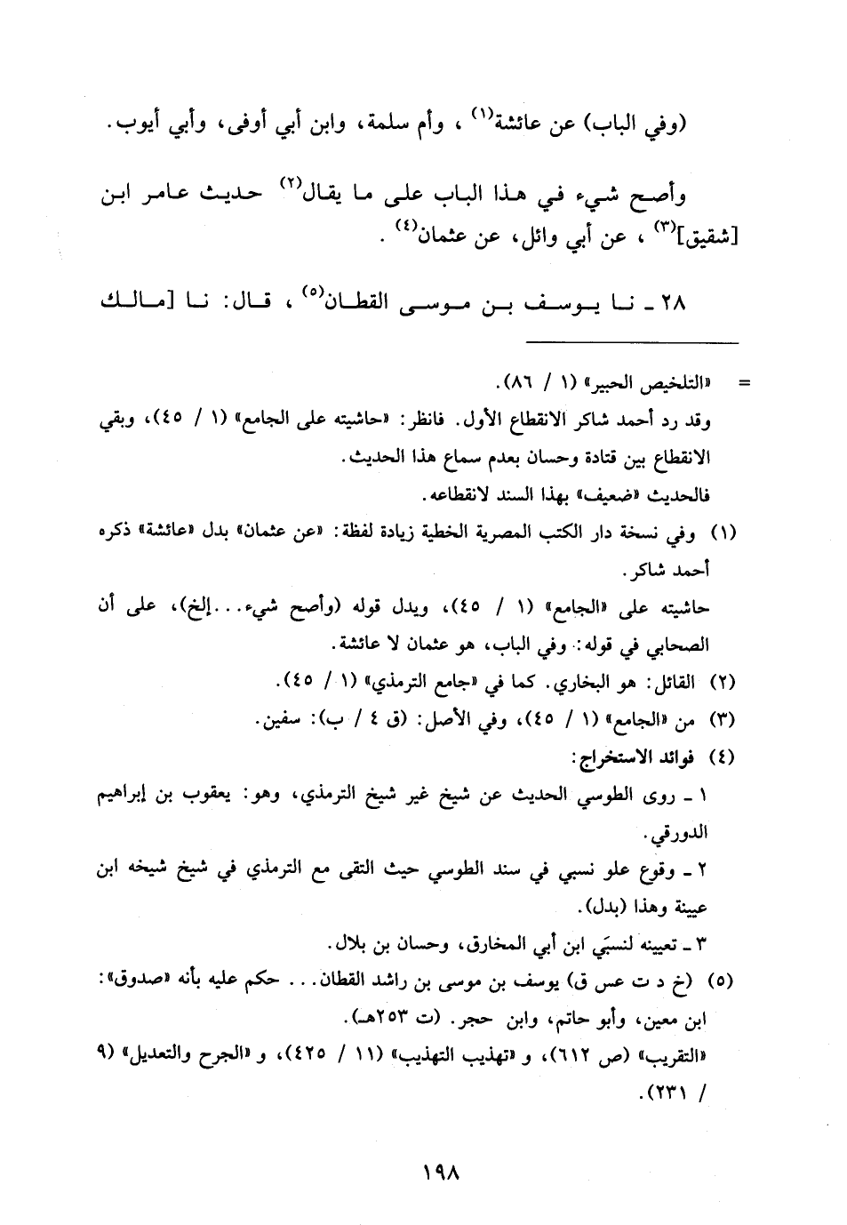 وَأَصَحُّ شَيْءٍ فِي هَذَا الْبَابِ عَلَى مَا يُقَالُ حَدِيثُ عَامِرِ ابْن شَقِيقٍ عَنْ أَبِي وَائِلٍ عَنْ عُثْمَانَ