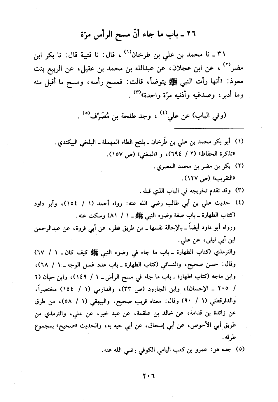 26 - بَابُ مَا جَاءَ أَنَّ مَسْحَ الرَّأْسِ مَرَّةٌ